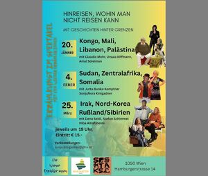 Mi 04.02.2026, von 19:00 bis 20:18 Uhr Kategorie : Kunst & Kultur Reisen, wohin man nicht reisen kann![]() Afghanistan ist unter der Scharia. Russland ist bedrohlich. Der Sudan versinkt im Chaos. Aus vielen Ländern dieser Welt hören wir nur über Krieg, Kämpfe, Katastrophen, Hungersnot. Aber eines ist sicher: Hinter den mehr und mehr sich schließenden Grenzen leben Menschen, die Gefühle haben, schwierige Aufgaben lösen müssen, Vorurteile hegen und Freundschaft schenken – genau wie wir. Wir können diesen Menschen nicht mehr begegnen, und wir können sie nicht mehr kennenlernen. Wir können uns nicht mehr inspirieren lassen und uns nicht mehr mit ihnen streiten. Erzählerinnen und Erzähler aber können mit Hilfe von Geschichten über Grenzen reisen. Sie können die Geschichten erzählen, die seit Jahrhunderten jegliche Hindernisse überwunden haben und dabei über den ganzen Globus bis zu uns gewandert sind. Preis : 15,00 Veranstaltungsort Theater Spektakel Hamburger Straße 14 1090 Wien - Alsergrund | Werbung : Ihre Werbung auf dieser Seite! Veranstaltungen Jetzt Ihre Veranstalungen KOSTENLOS in unserem Veranstaltungskalender Netzwerk eintragen! --> weitere Informationen Unser Netzwerk Wussten Sie, das die Informationen auf dieser Internetseite, nicht nur hier auf Wien24.net erscheinen, sondern auch auf jeder thematisch und geografisch passenden Internetadresse unseres Domain Netzwerk ausgeliefert werden. Mehr über die Möglichkeiten die dir das RootWeb.EU Domain Netzwerk bieten kann, erfährst du hier erfahre mehr über deine Möglichkeiten! Wussten Sie, das zu unserem Domain Netzwerk auch Veranstaltungskalender.net gehört, einer der größten Veranstaltungskalender in Österreich, auf dem Sie kostenlos Ihrer Veranstaltungen eintragen können. www.veranstaltungskalender.net |